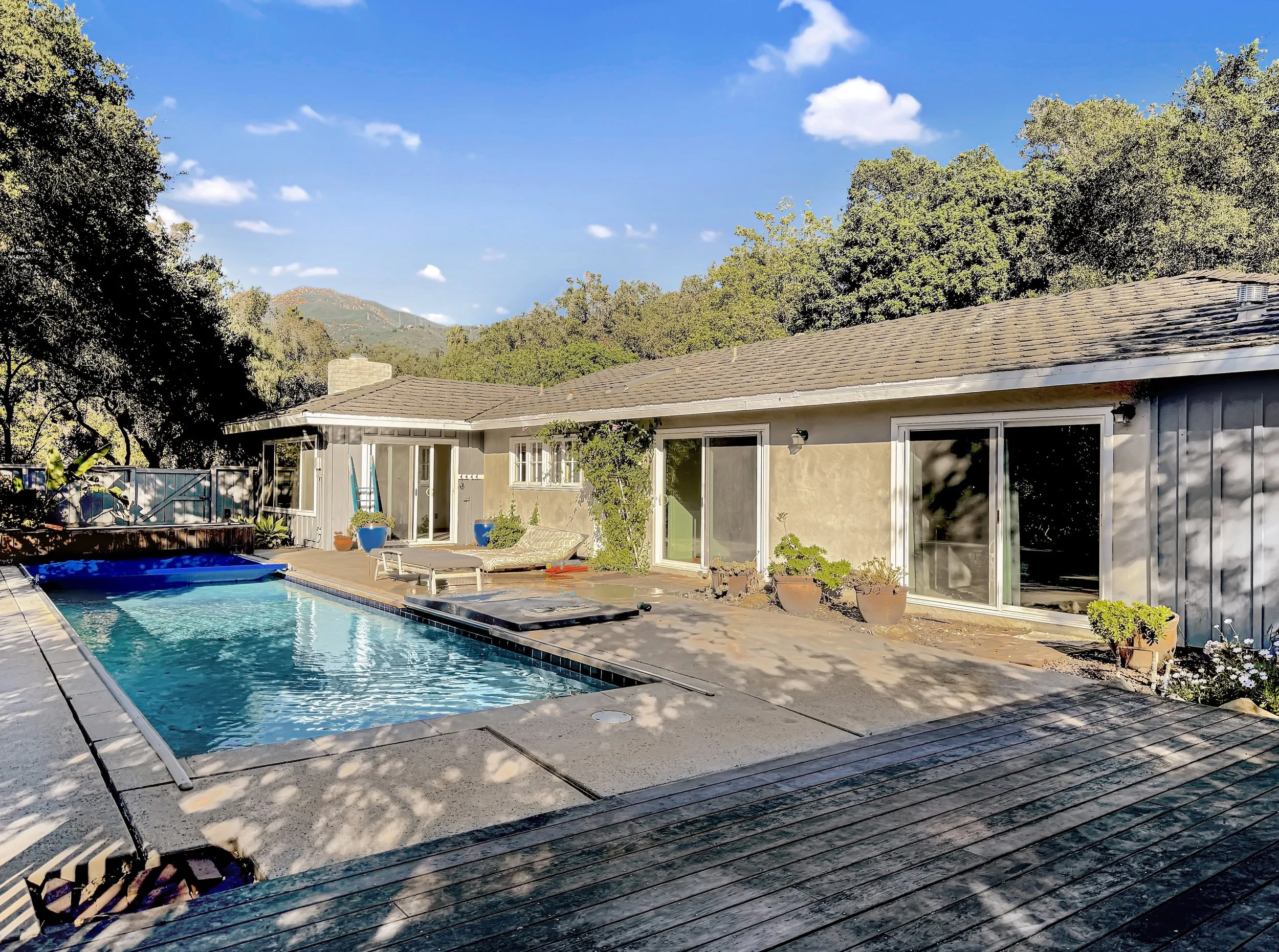 This beautifully updated single-level home sits on a serene 1.3-acre parcel in the highly desirable Foothill corridor. The layout offers flexible space for living and working. Sun-filled rooms open to a spacious deck, heated lap pool with cover, spa, and lush grounds with mature oaks, fruit trees, and garden beds. A two-car garage, ample parking, and included gardener and pool service add convenience. Tucked away on a quiet cul-de-sac, yet close to the Mission, hiking trails, and top schools, this is a rare private estate rental in Santa Barbara.