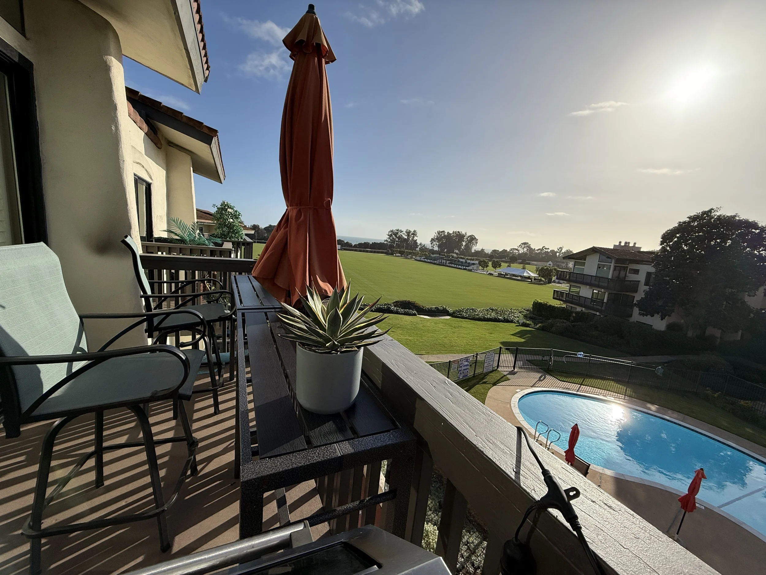 *** Available June, July & Aug *** Beautifully remodeled top-floor condo with panoramic views over the Santa Barbara Polo Fields and ocean beyond. This furnished residence features Restoration Hardware furnishings and custom cabinetry throughout, creating a refined, turnkey coastal retreat. Vaulted ceilings and abundant natural light highlight the living area with fireplace and private view deck—perfect for sunsets and entertaining. The upgraded kitchen and spa-like bath offer sleek finishes and modern fixtures, while the bedroom enjoys peaceful mountain views and generous storage. Includes carport parking with storage and access to gated community amenities including pool, EV charging, and guest parking. Ideally located near the Polo Club, beaches, and Montecito dining and shopping